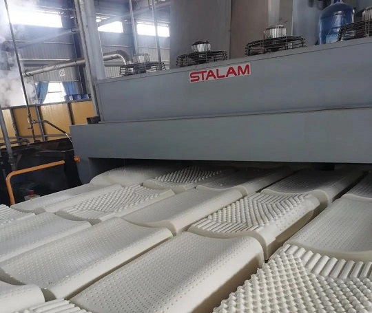 爱德福公司乳胶枕头生产线完成自动化改造,产能增幅达32%。吴鹏 摄