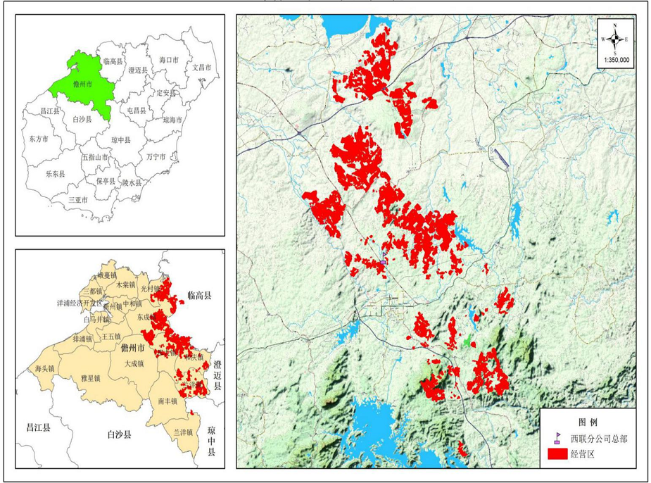 sunbet申搏官方网站集团FSC®认证单位(西联分公司)林地分布图