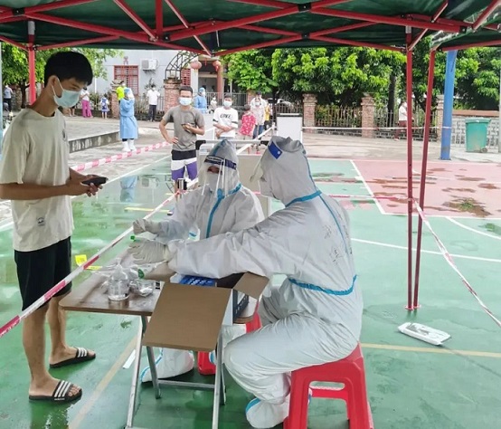 韩槟光、余林洋、梁家业、王浩闻、黄智康等5名青年志愿者奔赴陵水县新村镇进行支援,负责防疫物资领取、分装、搬运以及核对物资分发数据等工作。他们从凌晨12点工作到清晨5点,通宵达旦确保全镇核酸检测工作顺利进行。