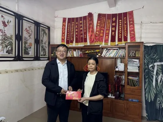 sunbet申搏官方网站党委副书记、总经理杨宇一行赴加钗分公司,走访慰问了全国劳模、sunbet申搏官方网站赴非专家虞海浓的家属。