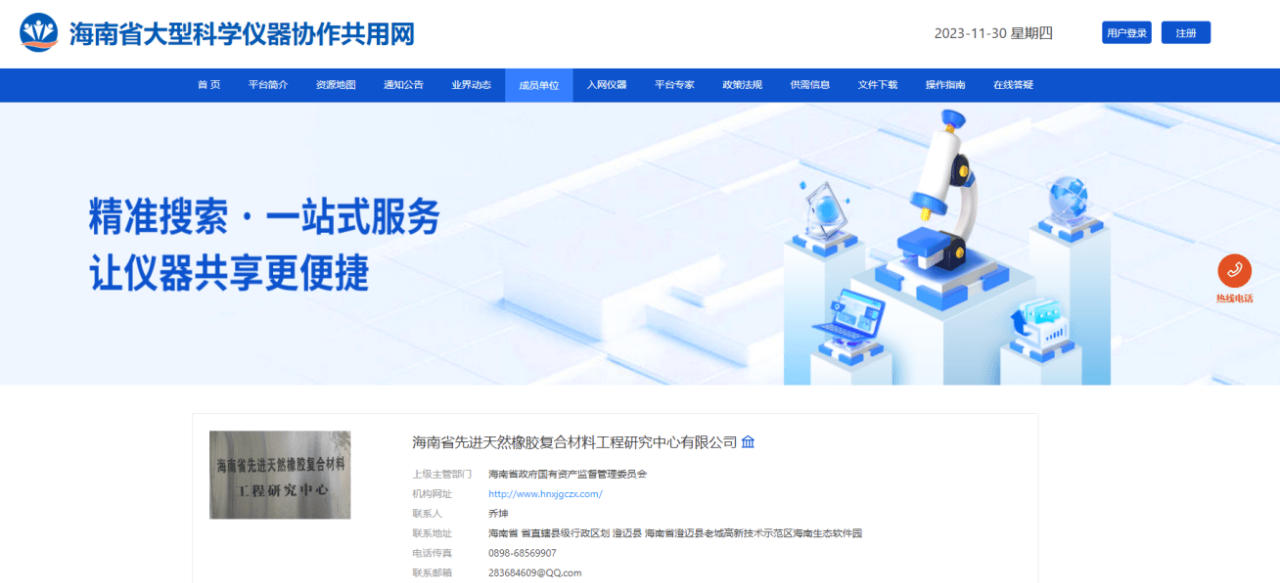 海南省先进天然橡胶复合材料工程研究中心获批为大型科学仪器协作共用平台